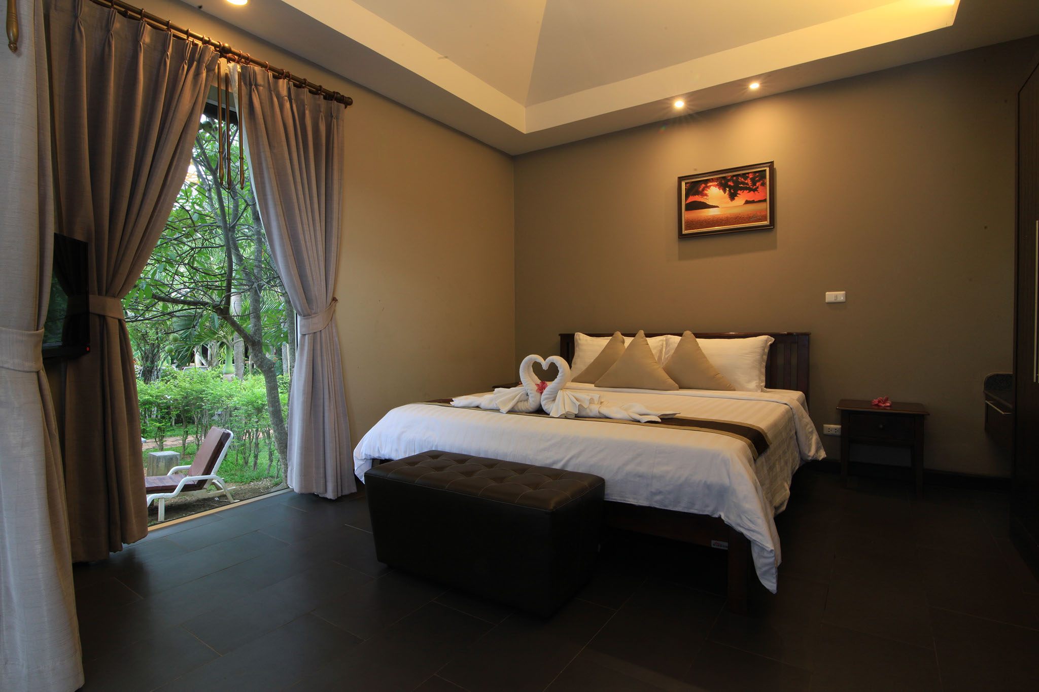 Deluxe Garden view which is the twin room in a bungalow. The main feature is surrounding by the garden with species plant that let you relax and peace in the nature circumstance. Moreover, there is the connecting door to separate the rooms. The inside is decorated with Dark Oak color to let you feel warm and relax with Thai scent by decorating the furniture and pattern. However, it is also Modern. There are both of the single and double bed according to the preference of the visitors. The usable Area is 36sq.m.